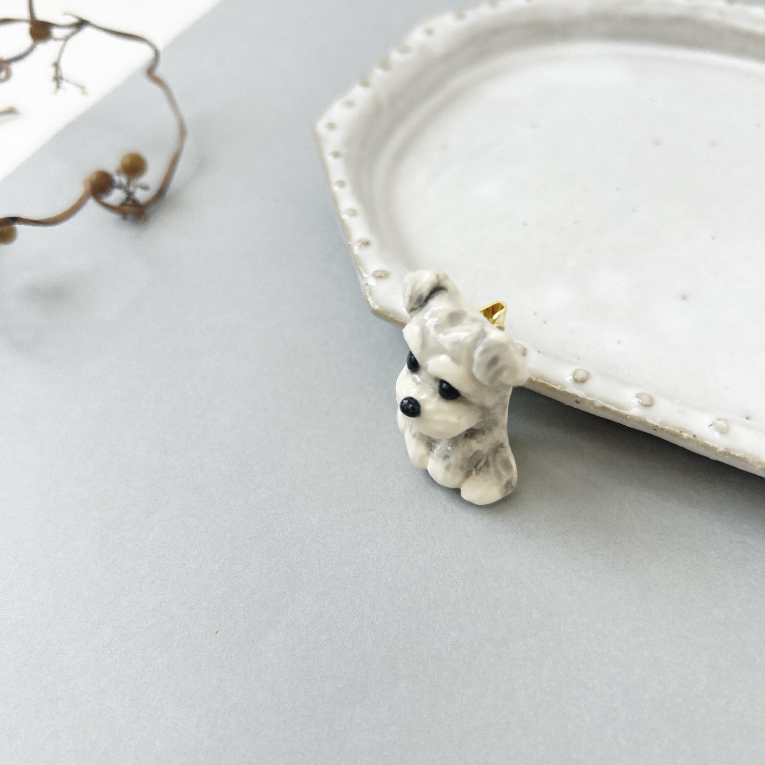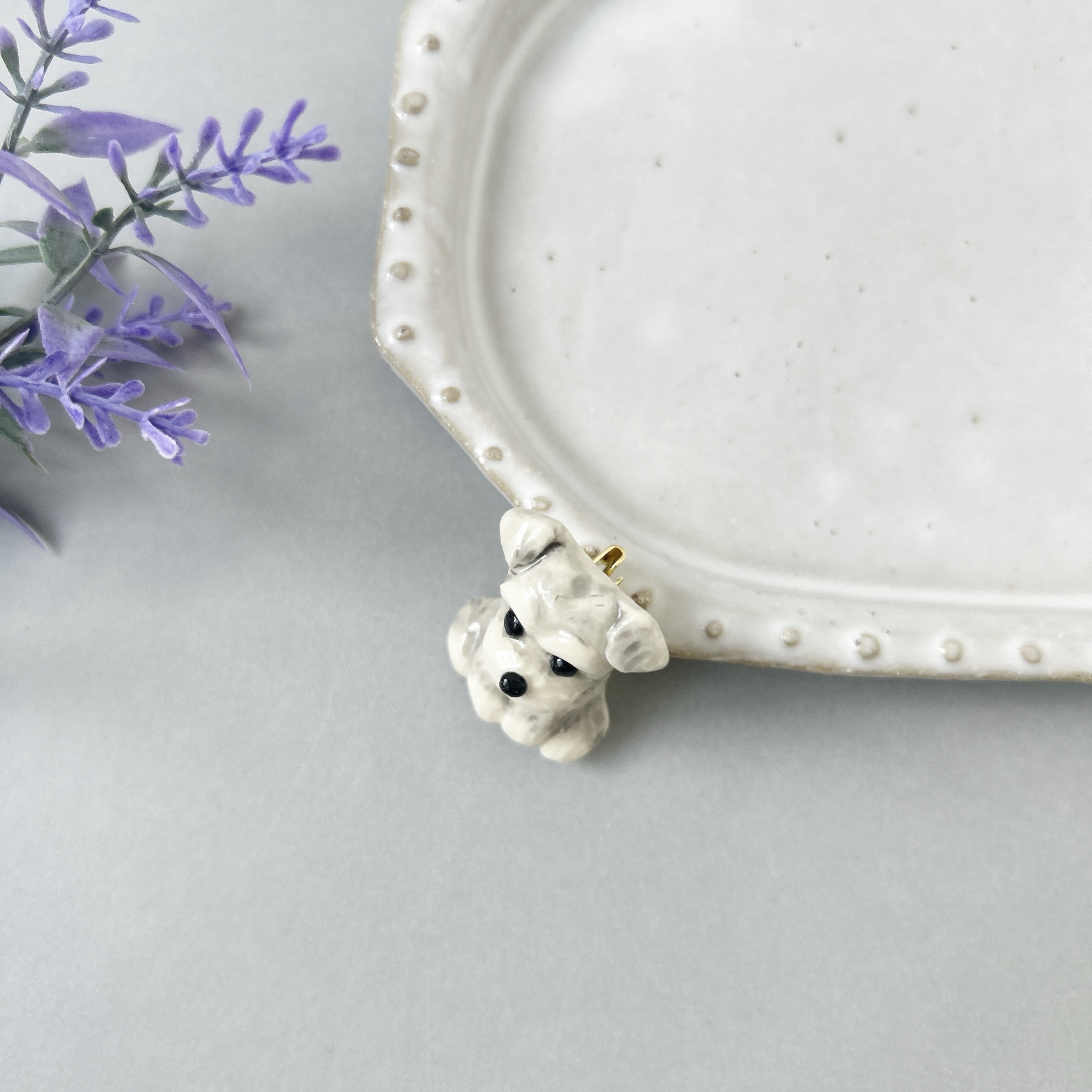 ミニチュアシュナウザーのブローチ(うすいグレー)