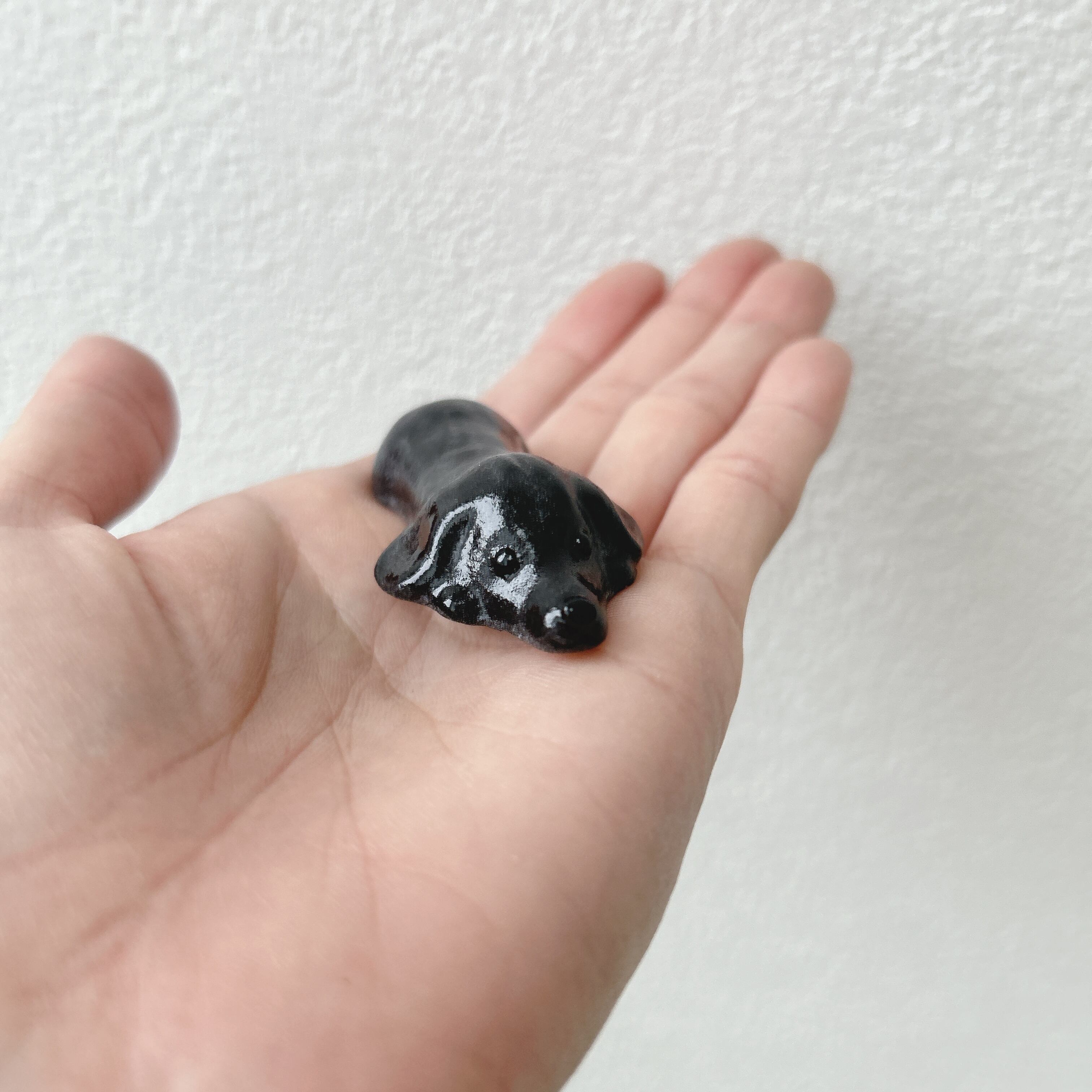 ダックス犬の箸置き(ブラックソリッド)伏せ